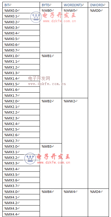 无论MX、MB、MW、MD都是基于内存总字节地址为偏移地址,也就是以%MB之后的地址为偏移地址。