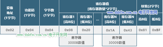 1) 功能码-0x04(读输入寄存器)