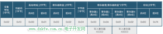 2) 功能码-0x10(写多个寄存器)