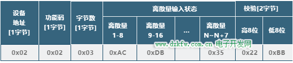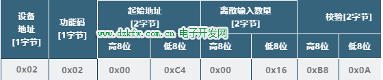 3) 功能码-0x02(读离散量输入)