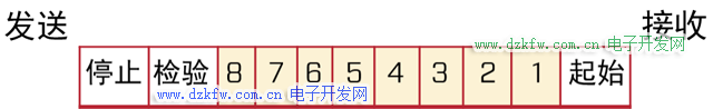 那么一个字符是什么呢,他由1个bit起始位,8bit数据位,1个bit奇偶校验位,1个bit停止位组成,在发送时从起始位开始。