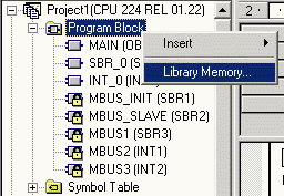 在指令树的Project(项目)中,以鼠标右键单击Program Block(程序块),在弹出的快捷菜单中选择Library Memory。如图2所示: