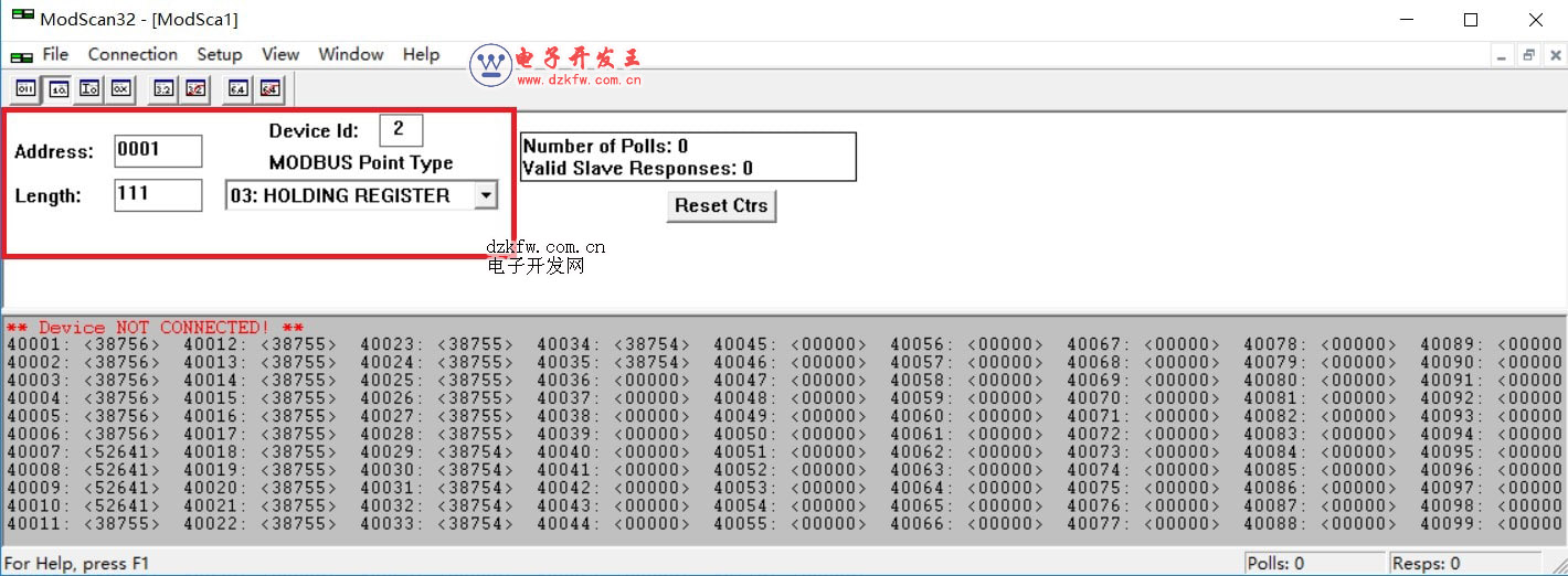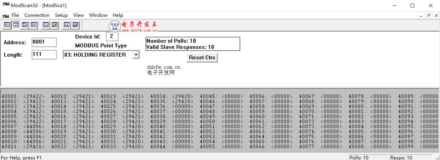 打开软件,设置需要测试的数据,例如:读取400001开始的111个字,设置如下: