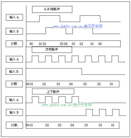 相对编码的信号有AB相、方向脉冲、上下脉冲三大类