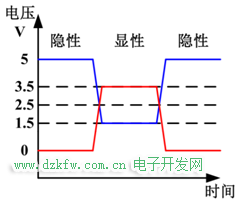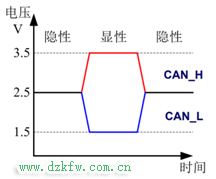 差分信号其实使用CAN_HIGH减去CAN_LOW的到的,在逻辑信号中,5V代表1, 0V代表0,而在差分信号中: