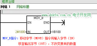 1 MOV_B指令:移动字(MOVE)指令将输入字节(IN)移至输出字节(OUT),不改变原来的数值