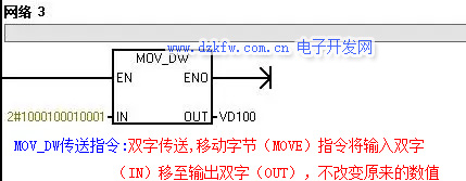 3.1 双字传送:移动字节(MOVE)指令将输入双字(IN)移至输出双字(OUT),不改变原来的数值