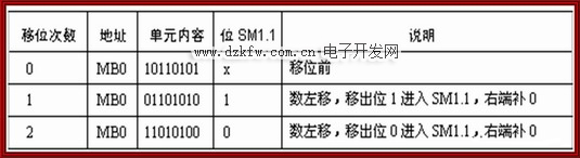 移位数据存储单元的移出端与另一端相连,同时又与SM1.1(溢出)相连,所以最后被移出的位被移到另一端的同时,也被放到SM1.1位存储单元。
