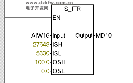 S_RTR(scale real to real):把32位浮点数乘个系数后存放到输出变量中。