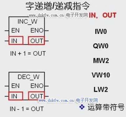 字递增、递减指令将输入字IN加一或者减一,并将运算结果送到OUT中,其操作数为十六位有符号整数,需要注意字递增、递减运算带符号。