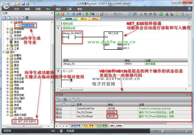 1) 必须用SM0.0来使能NET_EXE,以保证该指令的正常运行;