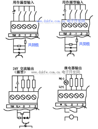 2,源型逻辑:当信号输入端子流入电流时,信号变为ON,为源型逻辑。