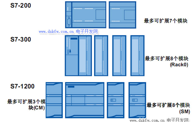 信号模块包括有数字量输入、数字量输出、数字量输入/输出、模拟量输入、模拟量输出、模拟量输入/输出等模块,这些信号模块是扩展到这个模块扩展插槽上的。