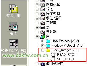 成功添加指令库后,用户可以在STEP7 Micro/win的指令树中找到‘Clock_Integer (v1.0)'