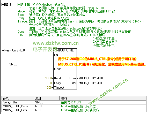 注意:1、Modbus RTU主站功能是通过指令库中预先编好的程序功能块实现的,该库只针对Port0口有效