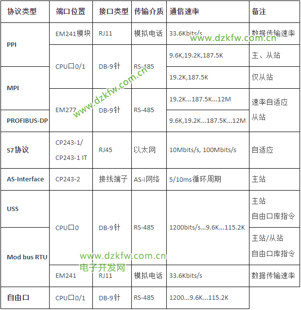 然后我们可以通过一张图片了解 S7-200 PLC支持的几种通讯协议。