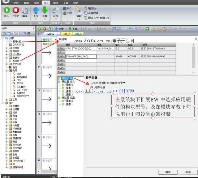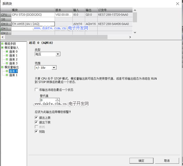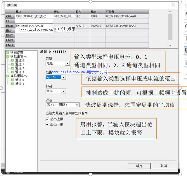 模拟量扩展模块的组态: