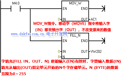 FILL_N指令包含两个个输入和一个输出。下面这个例子就是讲8个0填充到vw202开始的8个位置,相当于清空表。