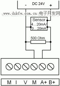 S7-224 XP 的两路模拟量输入通道被出厂设置为电压信号(0-10V)输入。为了能够输入电流信号,必须在 A+ 与 M 端 (或 B+ 与 M 端) 之间并入一个500 欧姆的电阻。并必须确保外接电流源具有短路保护以防损坏。因为没有充分隔离,外接电阻也可成为干扰源。
