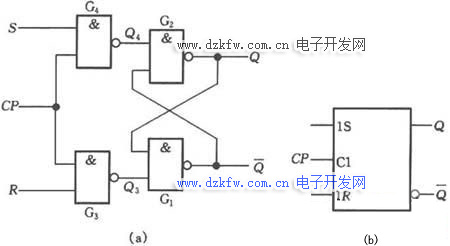 图1 同步RS触发器(a)电路结构(b)逻辑符号