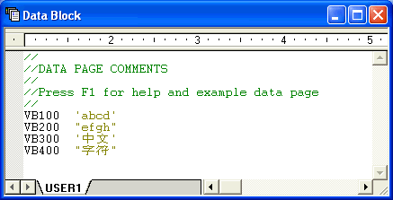 - 在编程软件中,用单字节(英文)的单引号(')将作为字符的内容括起来可以在数据块和状态图中输入ASCII数据字节