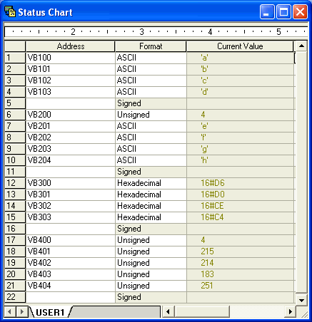 - 按上述方法输入的字符串会自动按字符串格式排列(在起始地址中放入字符个数)