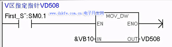 怎样取出这个地址所指的MB10内的数据呢,PLC规定,是把VD504前加“*”号,来取出它的数据,这时“*VD504“就表示是MB10,