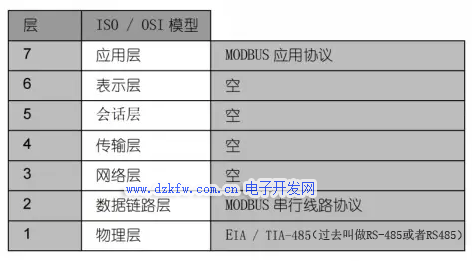 Modbus在7层OSI参考模型中属于第七层应用层,数据链路层有两种:基于标准串口协议和TCP协议,物理层可使用3线232、2线485、4线422,或光纤、网线、无线等多种传输介质。