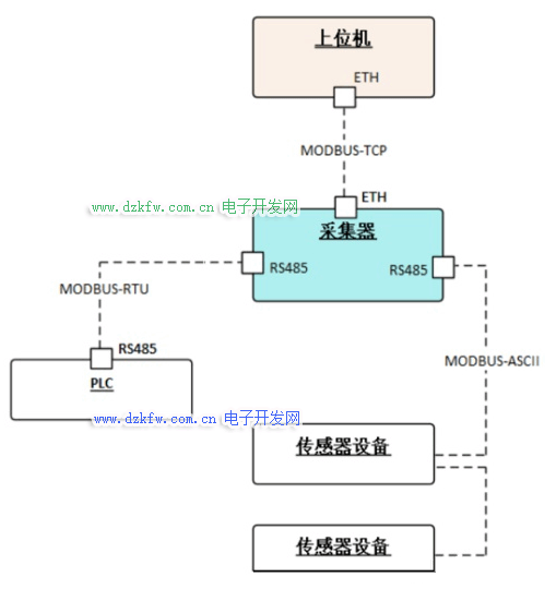 (2)Modbus可以支持多种电气接口,如RS-232、RS-485等,还可以在各种介质上传送,如双绞线、光纤、无线等。
