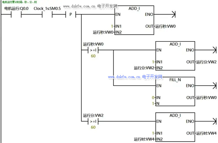 统计小时、分、秒的梯形图程序如下:
