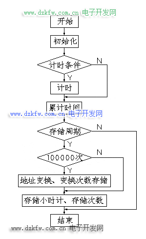 存储次数存储。为了小时计存储地址更换的需要,存储次数也要与小时计一样进行永久存储,并到100000次后更换地址。