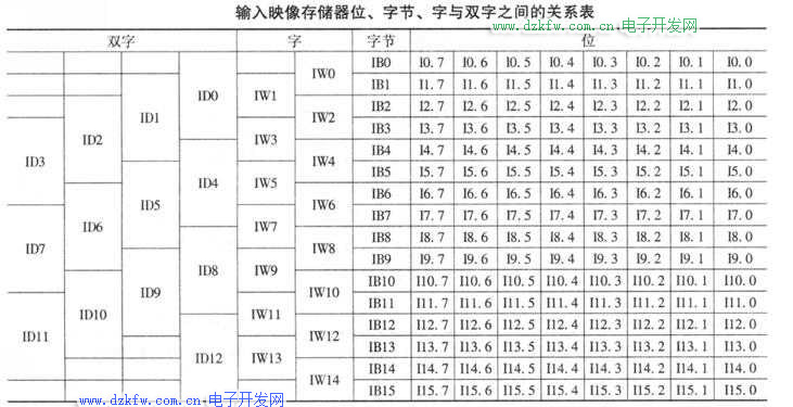 输入映像存储器位、字节、字与双字之间的关系见下面的图表。