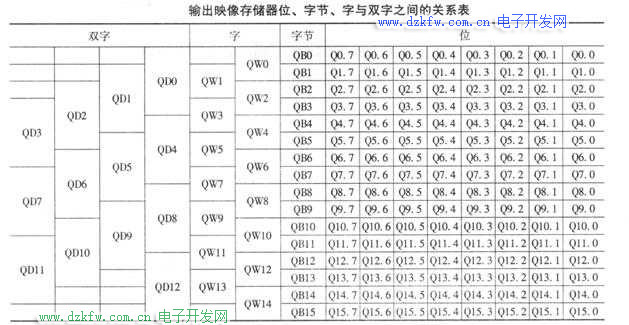 输出映像存储器位、字节、字与双字之间的关系,见上面图表。