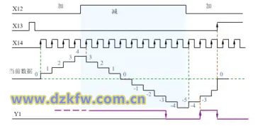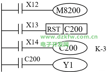 - 特殊辅助继电器M8200~M8234设定对应计数器C200~C234计数方向,继电器置0为递加型,继电器置1为递减型;