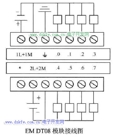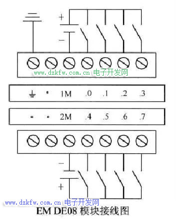 数字量输入输出模块接线如CPU模块接线没有多大差别,注意事项也都差不多。数字量输入接线图如下所示