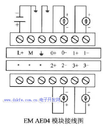 ①模拟量模块有专用的插针与CPU链接,并通过此链接向模块提供DC5V电源,此外还必须外接DC24V电源。