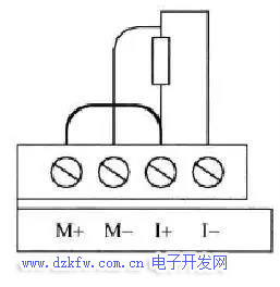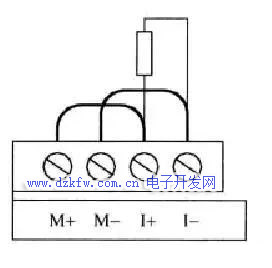 将传感器一端的两根线与【M-】【I-】相连,而传感器另一端的一根线与【I+】相连,然后把【M+】【I+】短接即可。