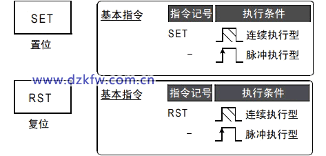 SET指令是对输出继电器(Y)、辅助继电器(M)、状态(S)以及数据寄存器(D)的指定位进行线圈驱动的指令。