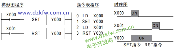 下面的程序举例中,SET Y000后接着RST Y000的程序就是这个情况。