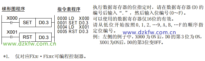 在SET指令和RST指令使用的软元件中,可以指定数据寄存器(D)的位。