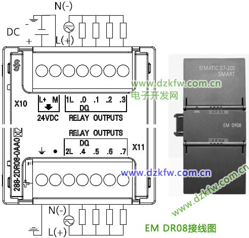 图3 EM DR08接线图,西门子EM DR08数字量输出模块8路继电器输出
