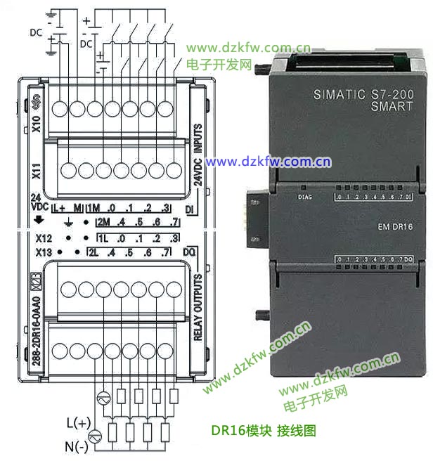 图2 DR16模块 接线图,西门子EM DR16数字量输出模块16路继电器输出