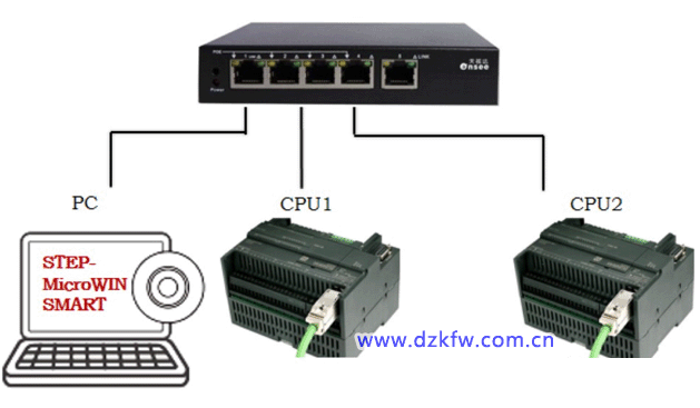 S7-200 SMART 支持做 Modbus TCP 的客户端或者服务器,可以实现 PLC 之间通信,也可以实现与支持此通信协议的第三方设备通信。通信伙伴数量比较多的时候,可以使用交换机,扩展以太网接口