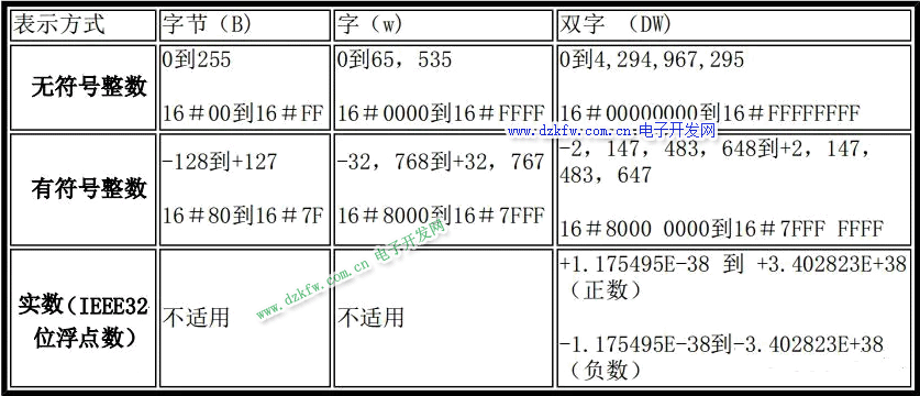 实数(浮点数):以 32 位单精度数表示,实数按双字长度访问。浮点数精确到小数点后第 6 位。因此输入浮点常数时,最多只能指定 6 位小数。计算涉及到包含非常大和非常小数字的一长串数值时,计算结果可能不准确。