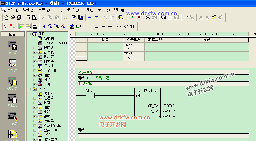 12.编程:在调用子程序里找到ETHX_CTRL,使用SM0.1触发以太网通讯。