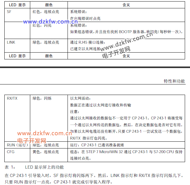 (1)下载程序后,一定要把PLC系统重启一下,以使CP243-1的配置生效。 (2)每个CPU只能连接一个CP243-1。 (3)作为客户机和服务器的注意事项。 (4)面板指示灯的意义。