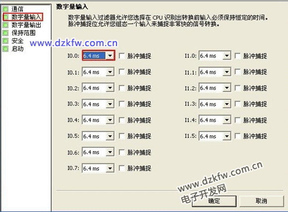 PLC滤波时间及脉冲捕捉功能的设置如图所示: