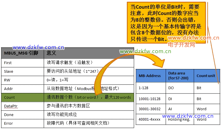 Q4:MBUS_MSG指令中代表数据长度的COUNT引脚单位是什么?