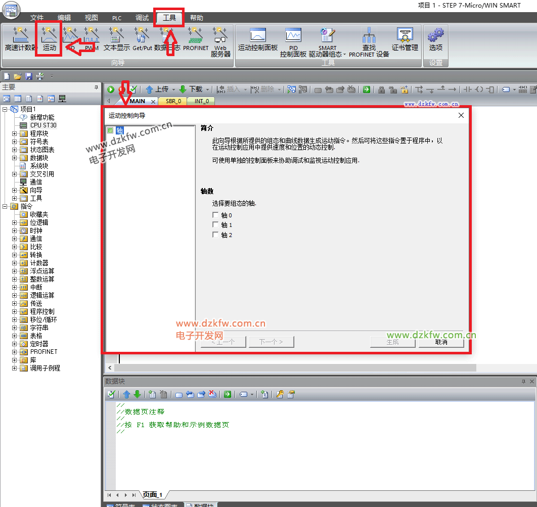 工具-运动 加载运动控制向导,选择“轴0”后单击下一个