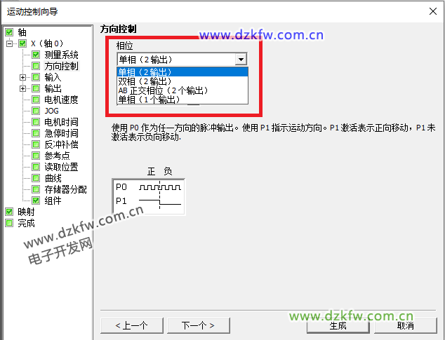 单项(2输出):P0脉冲控制运动,P1高低电平控制方向